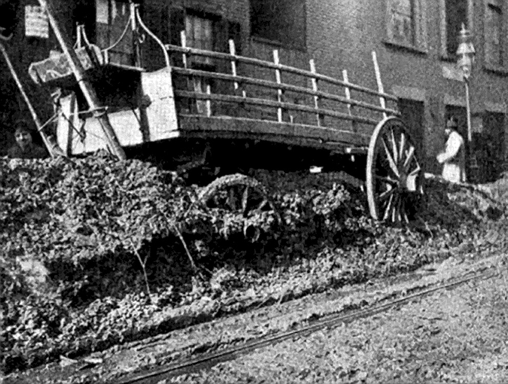 FIGURE 2. Manure piled up on a New York City street creating deadly unsanitary conditions—health officials called this the “milk problem.”