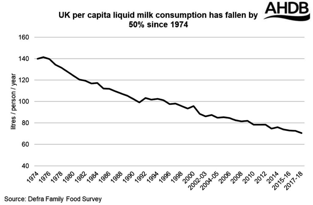 FIGURE 3. UK per capita liquid milk consumption, 1974–2018