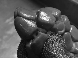 We then sent the livers and the meat to Chef Chris McDonald, owner and executive chef of Cava Restaurant in Toronto. The meat and liver were labeled A and B, so the chef did not know which was which. He prepared the livers and the meat in various ways and served them to the gathered patrons. There was an obvious difference in the livers: one was darker and firmer, the other pale and mealy. However, opinions were divided on the meat, and the differences were less obvious. The tasters were split on which calf tasted better. Perhaps most people are accustomed to eating calves fed pasteurized milk.
